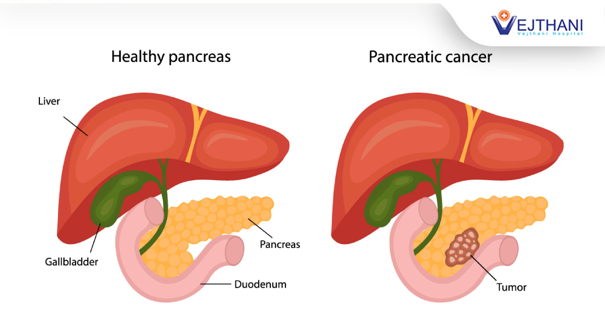 The pancreas is a pear-shaped organ that is approximately six inches long located behind the stomach. Its function is secreting hormones such as insulin to aid digestion and blood sugar regulation. The mutation of pancreatic cell causes uncontrolled duplication resulting in forming a mass of cells also known as a pancreatic tumor.