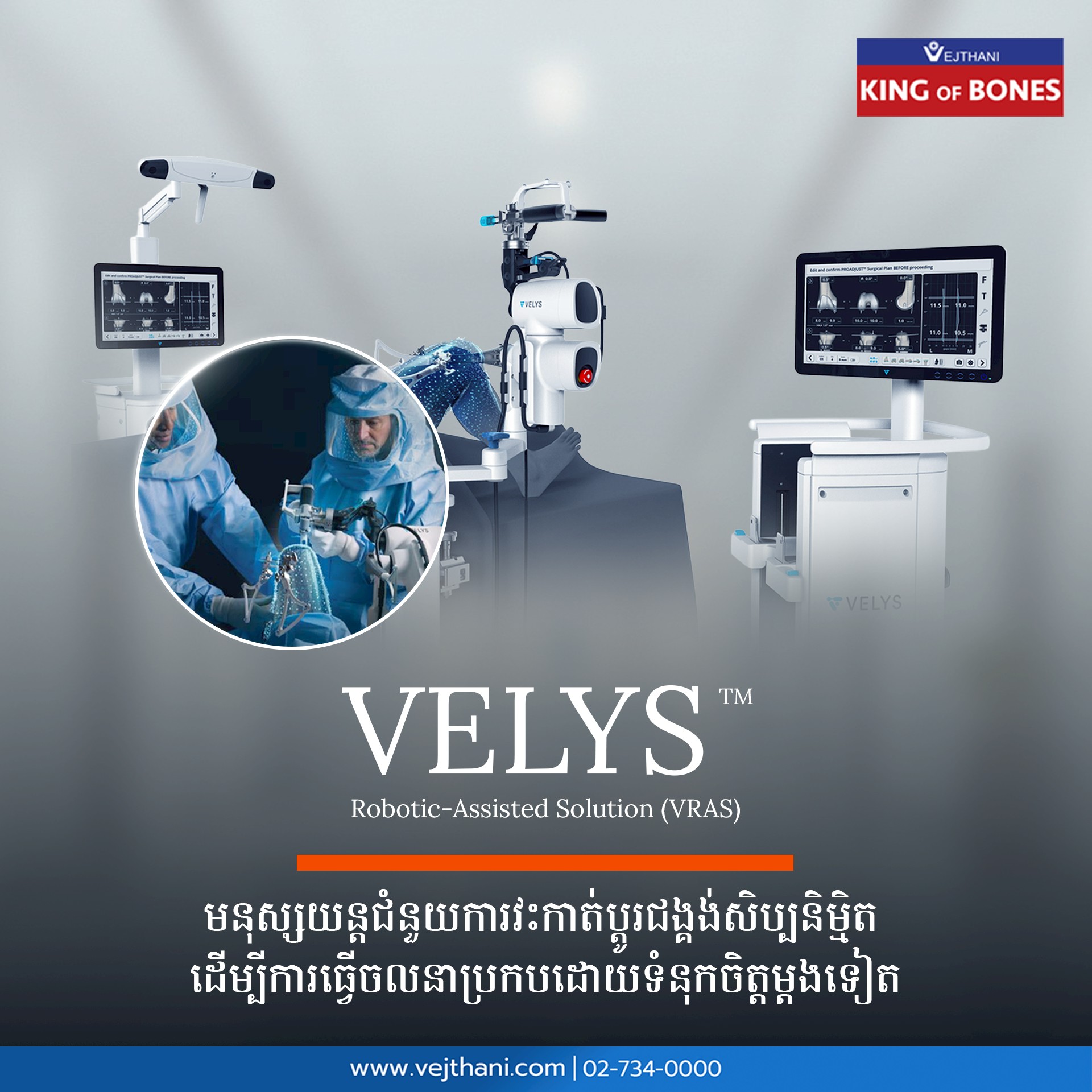ការវះកាត់ជង្គង់ដោយមនុស្សយន្ត VELYS™ ជំនាន់ថ្មី ជួយឲ្យអ្នកជំងឺដើរបានក្នុងរយៈពេល 6 ម៉ោងបន្ទាប់វះកាត់។ ស្គាល់រោគសញ្ញា មូលហេតុ និងលទ្ធផលព្យាបាលសម្រាប់ជំងឺរលាកសន្លាក់ជង្គង់