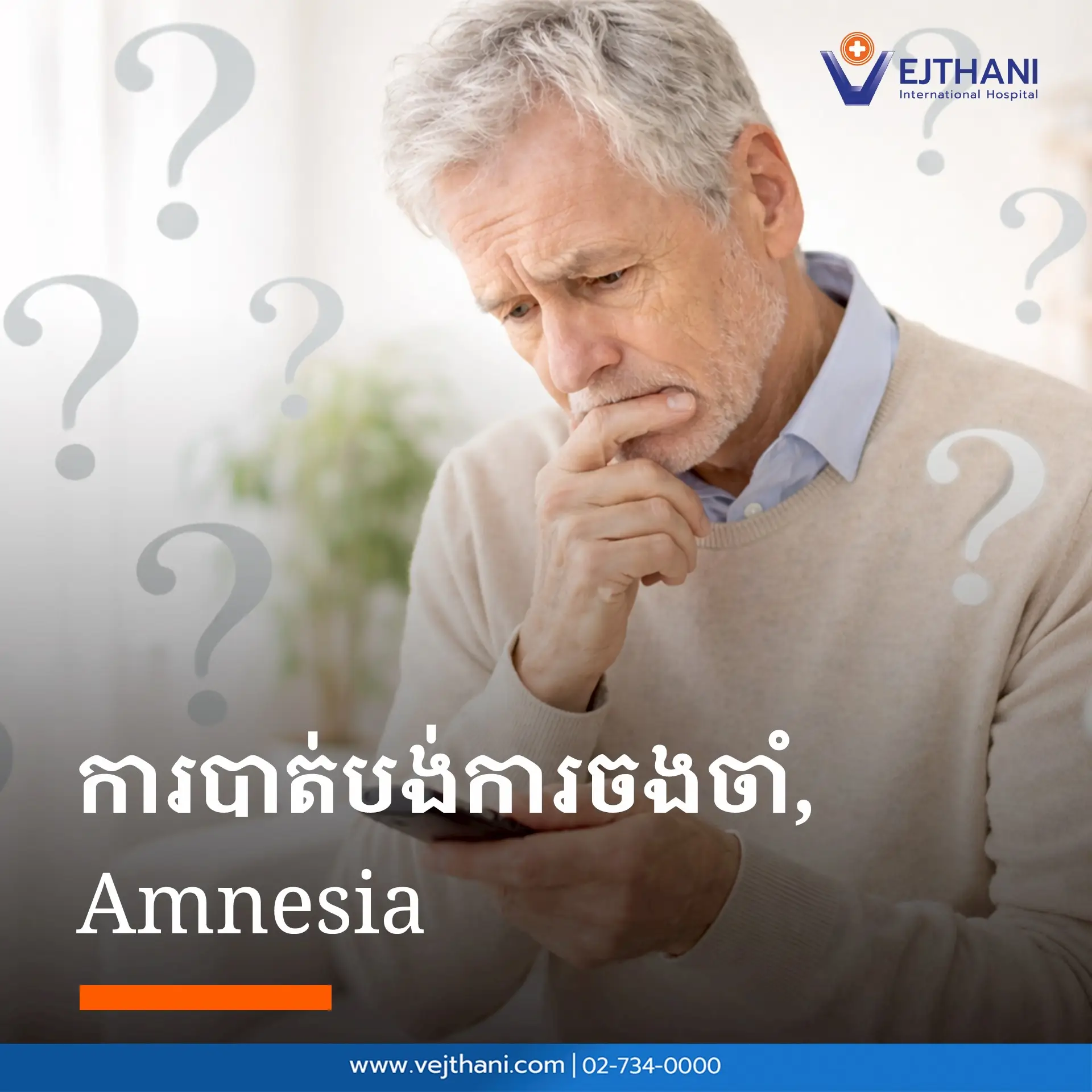 - កត្តាផ្សេងៗដូចជា របួសខួរក្បាល ជំងឺដាច់សរសៃឈាមខួរក្បាល ឬការវះកាត់ដែលបណ្តាលឱ្យមានបញ្ហាការចងចាំ
