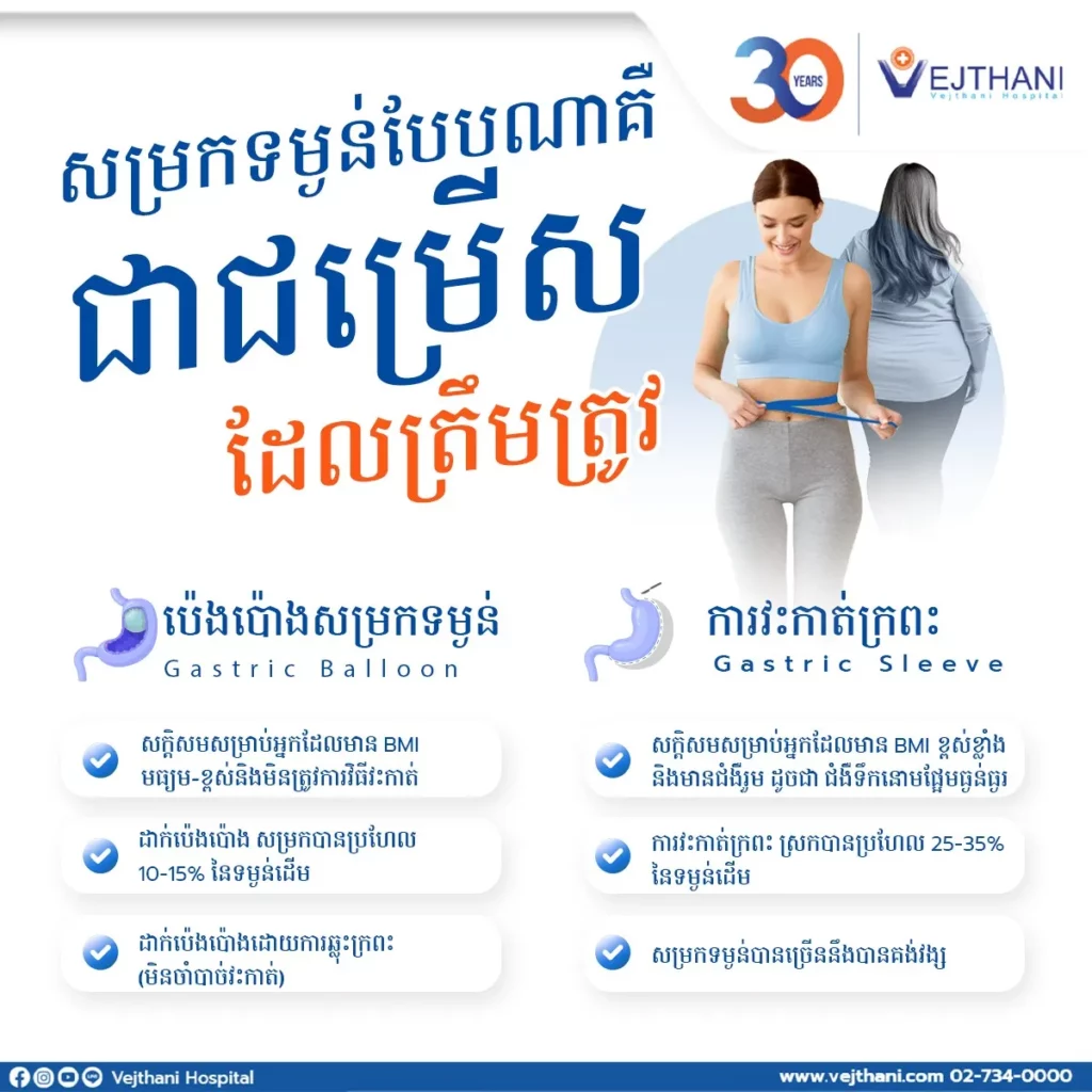 “ការវះកាត់ក្រពះ” និង “ការដាក់ប៉េងប៉ោងក្នុងក្រពះ” គឺជា ២ វិធីសាស្រ្តពេញនិយម ប៉ុន្តែមានភាពខុសគ្នាខ្លាំង ទាំងនៅក្នុងលក្ខខណ្ឌនៃយន្តការ ប្រសិទ្ធភាព ផលប៉ះពាល់ និងការថែទាំក្រោយនីតិវិធី