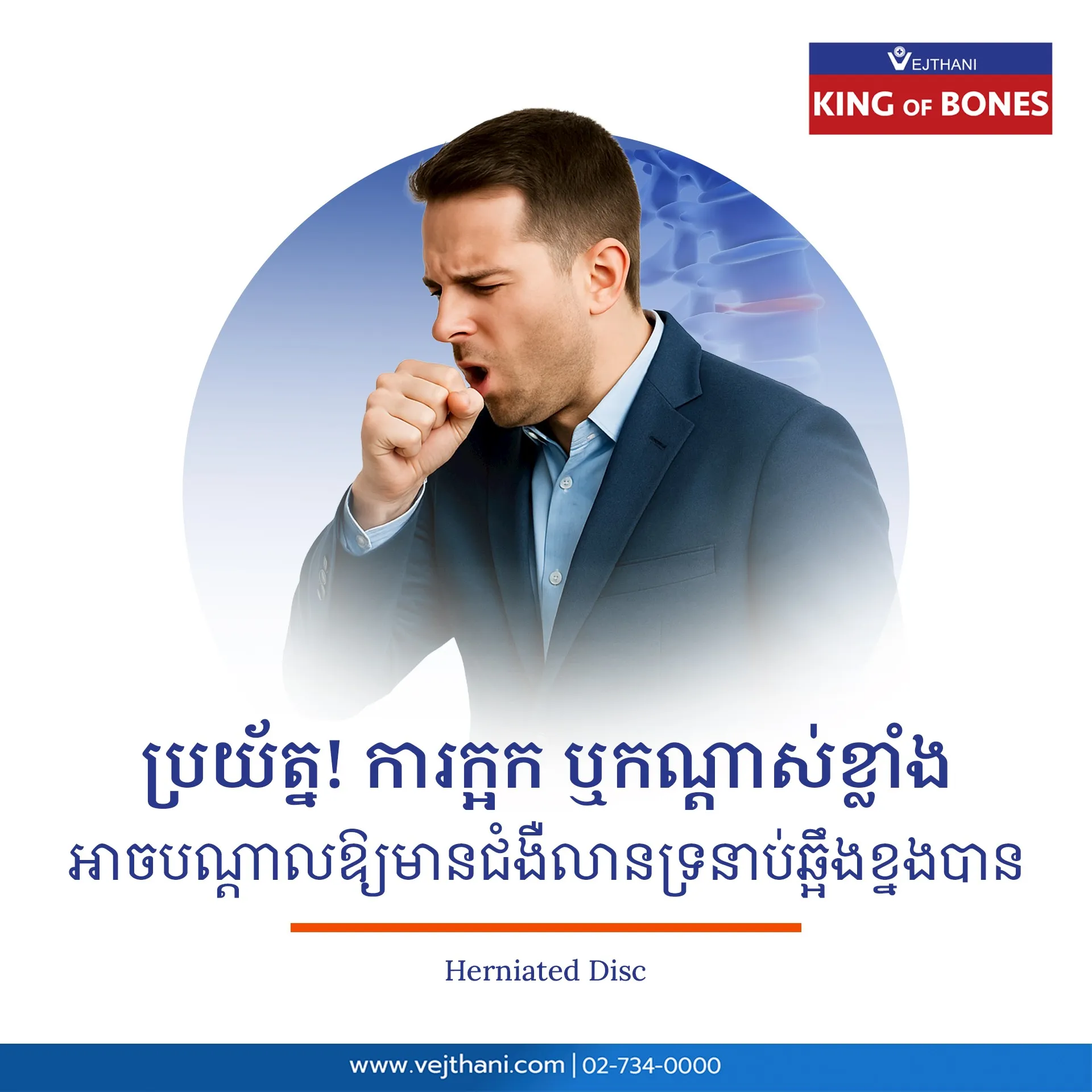 មនុស្សជាច្រើនប្រហែលជាគិតថា “ការក្អក ឬ “កណ្តាស់” គឺគ្រាន់តែជារឿងតូចតាចដែលកើតឡើងជារៀងរាល់ថ្ងៃ។ ប៉ុន្តែតើអ្នកដឹងទេថា ប្រសិនបើអ្នកមានបញ្ហាសឹកឆ្អឹងខ្នងស្រាប់ហើយ ឬស្ថិតក្នុងក្រុមដែលមានហានិភ័យ ការក្អកឬកណ្តាស់ខ្លាំងៗ អាចបង្កជាជំងឺលានទ្រនាប់ឆ្អឹងខ្នង បានដោយអ្នកមិនដឹងខ្លួន