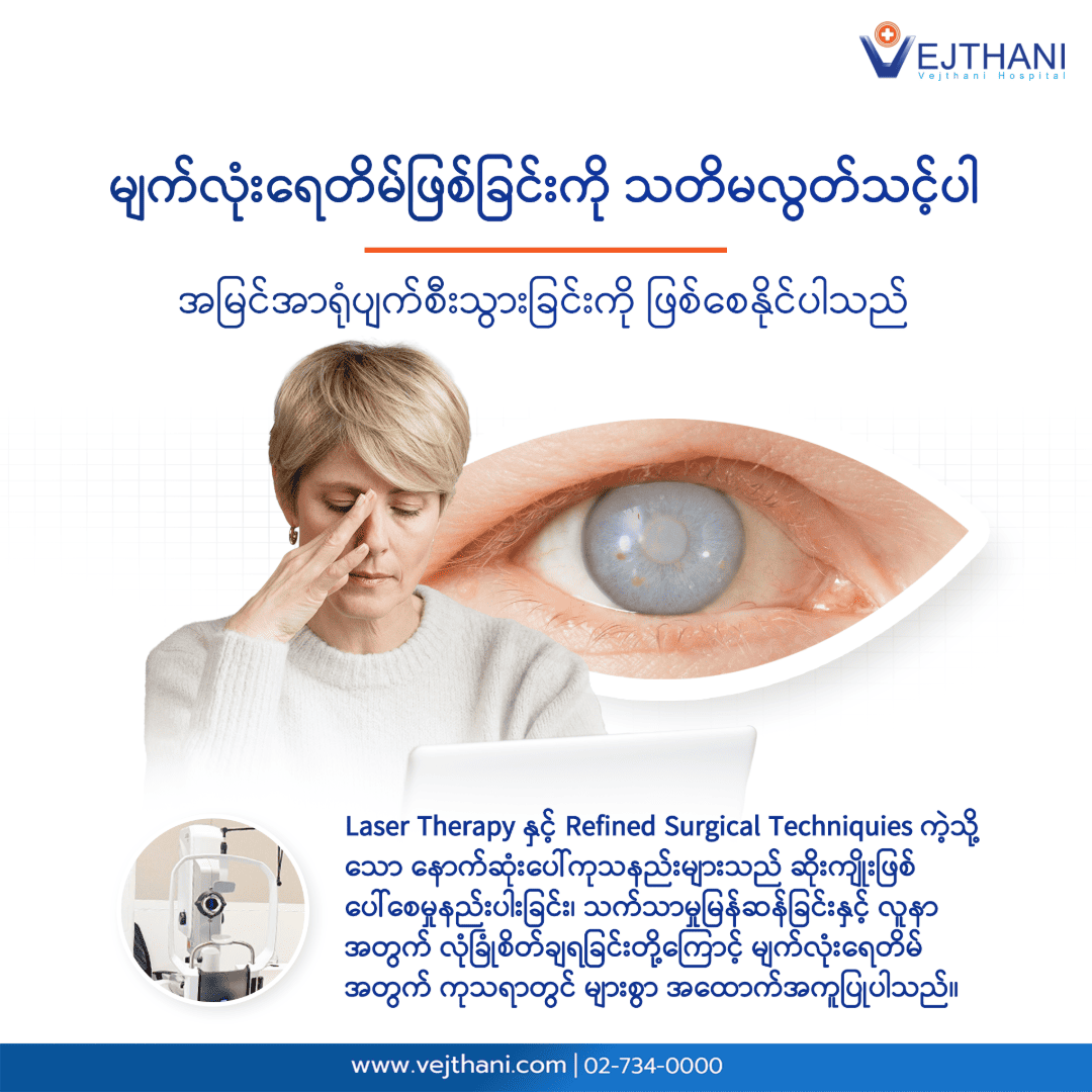 အသက်ကြီးလာသည်နှင့်အမျှ ကျွန်ုပ်တို့၏ ခန္ဓာကိုယ်နှင့် အင်္ဂါများသည် တဖြည်းဖြည်း ယိုယွင်းလာပြီး မျက်စိသည် လျစ်လျူမရှုသင့်သော အရေးကြီးဆုံးအင်္ဂါများထဲမှ တစ်ခုဖြစ်သည်။ အသက်ကြီးသူများတွင် အဖြစ်များသော မျက်စိရောဂါများဖြစ်သည့် အတွင်းတိမ်၊ မျက်စိအတွင်းယိုယွင်းမှုနှင့် ရေတိမ်များ ကဲ့သို့သော အခြေအနေများ—သည် သတိပေးလက္ခဏာများမရှိဘဲ ဖြစ်ပေါ်လာတတ်ပြီး နောက်ဆုံးတွင် အမြင်အာရုံဆုံးရှုံးသွားနိုင်သည်။