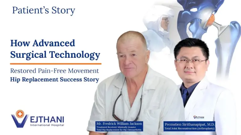 Mr. Tan Sok Vichea endured hip osteoarthritis for over a decade before seeking expert care at King of Bones, Vejthani Hospital.
