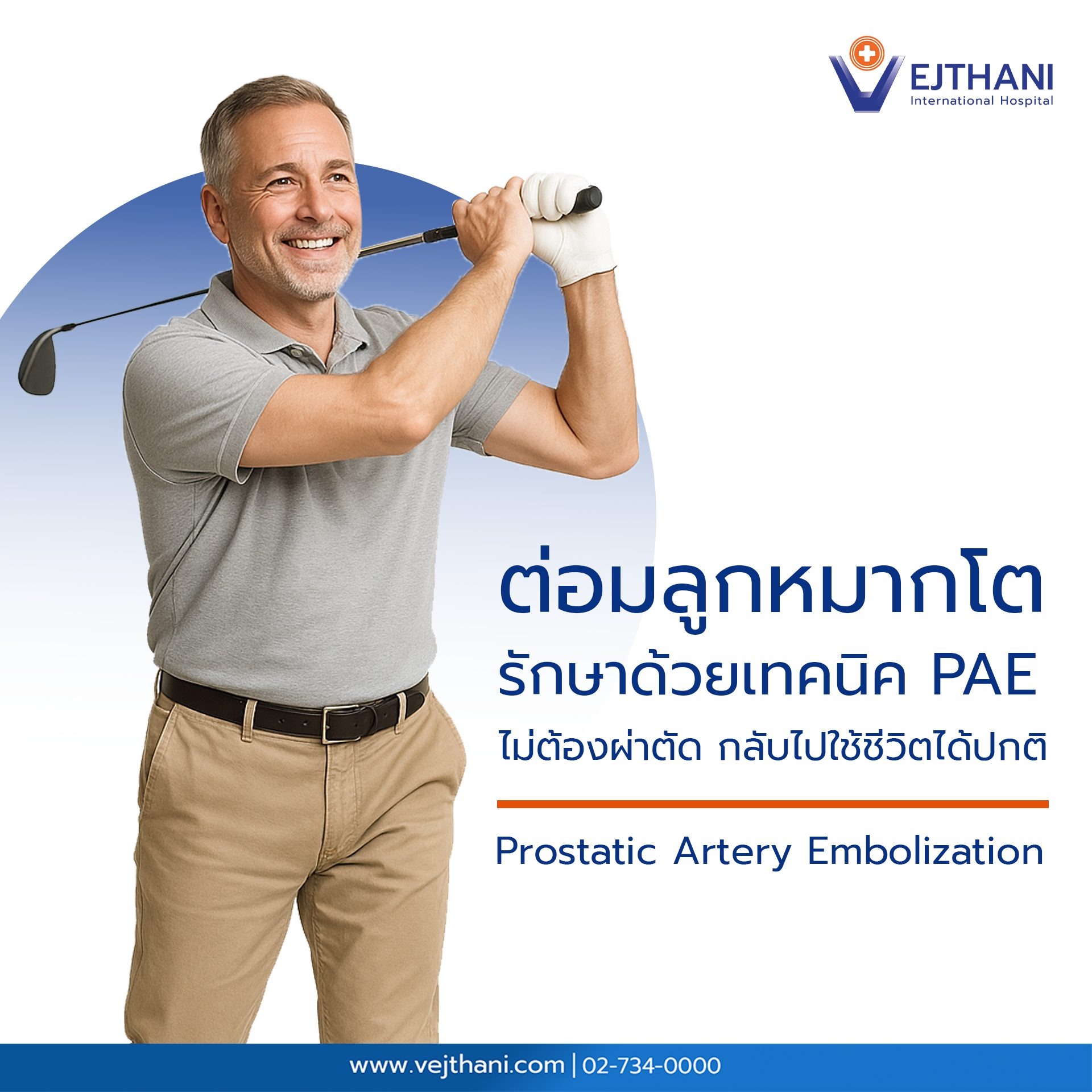 ปัจจุบันมีแนวทางการรักษาแบบใหม่ที่ไม่ต้องผ่าตัด เรียกว่า PAE (Prostatic Artery Embolization) หรือการอุดหลอดเลือดที่ไปเลี้ยงต่อมลูกหมาก ซึ่งช่วยลดขนาดต่อมลูกหมากได้ถึง 20 – 40% ลดอาการปัสสาวะขัด หรือปัสสาวะลำบาก โดยไม่ส่งผลกระทบต่อสมรรถภาพทางเพศ