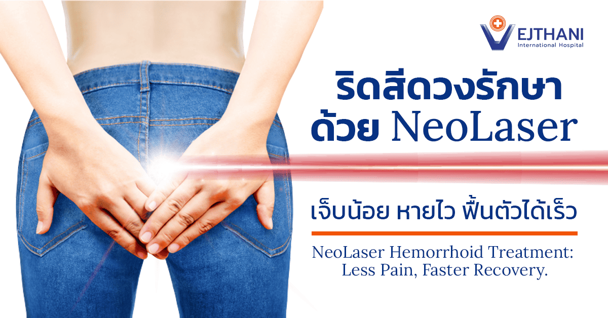 ริดสีดวงทวาร (Hemorrhoids) ถือเป็นโรคที่พบได้บ่อยในกลุ่มประชากรทุกเพศทุกวัย ปัจจุบันสามารถรักษาได้ด้วย Neolaser แผลเล็ก เจ็บน้อย และลดการบาดเจ็บต่อเนื้อเยื่อบริเวณโดยรอบได้อย่างมีประสิทธิภาพ อ่านต่อ…