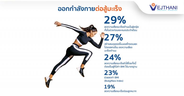 ต่อสู้มะเร็ง อย่างไรก็ตาม การออกกำลังกายไม่พบว่าสามารถลดความเสี่ยงโรคมะเร็งที่เกิดจากความผิดปกติ