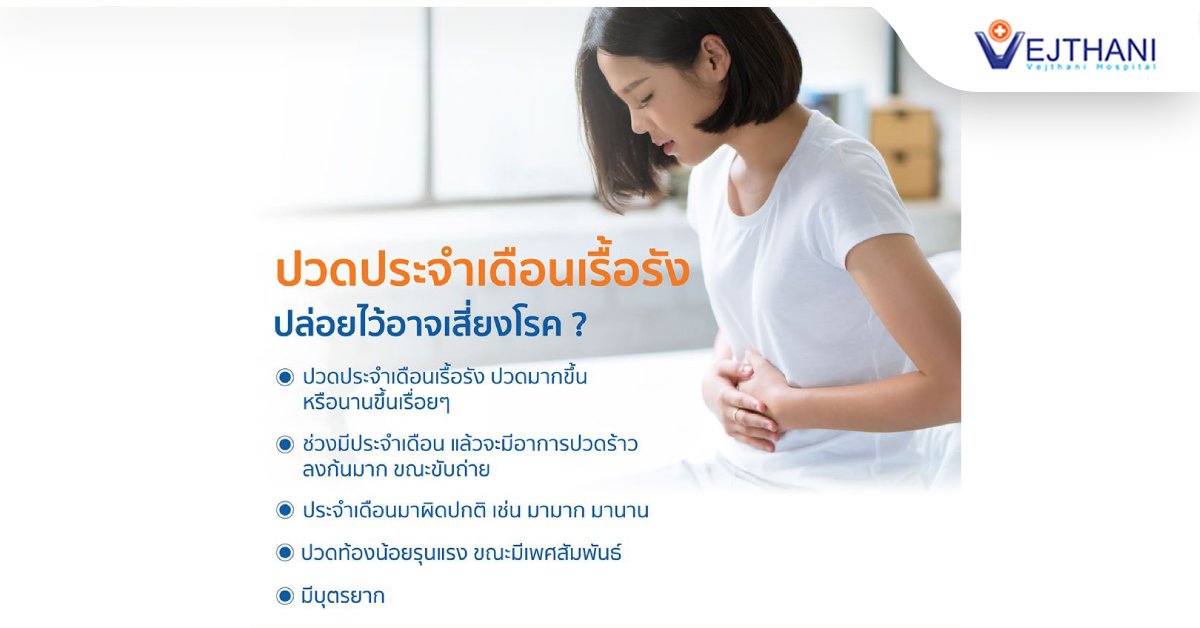 • ปวดประจำเดือนเรื้อรัง ปวดมากขึ้น หรือนานขึ้นเรื่อยๆ