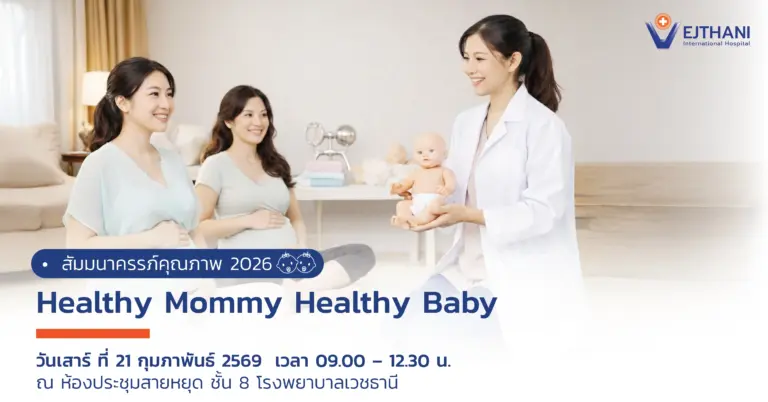 สัมมนาครรภ์คุณภาพ 2026 Healthy mommy Healthy baby วันเสาร์ ที่ 21 กุมภาพันธ์ 2569 เวลา 9.00 – 12.30 น. ณ ห้องประชุมสายหยุด ชั้น 8 โรงพยาบาลเวชธานี
