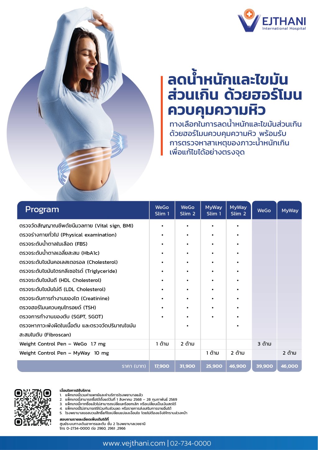 ทางเลือกในการลดน้ำหนักและไขมันส่วนเกินด้วยฮอร์โมนควบคุมความหิว พร้อมรับการตรวจหาสาเหตุของภาวะน้ำหนักเกิน เพื่อแก้ไขได้อย่างตรงจุด